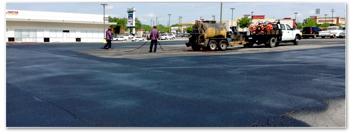 Sealcoating is the best way to protect and maintain your asphalt pavement. Untreated asphalt will deteriorate rapidly. The asphalt binder that holds the pavement together begins to oxidize and weather soon after installation. Moisture penetrates the asphalt causing further damage. Sealcoat replenishes the asphalt binder and provides superior protection against environmental distress which extends the overall life of the asphalt. Sealcoat also restores the original black color to asphalt giving it a sleek, clean finish that will leave your pavement looking like new.